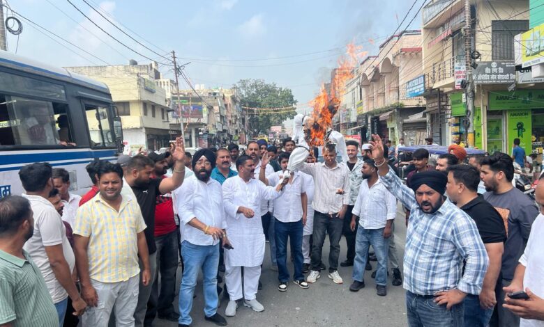 पेपर लीक मामले में कांग्रेसियों ने फूंका प्रदेश सरकार का पुतला