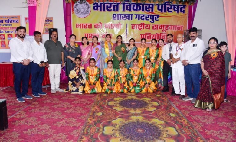 भारत को जानो और समूह गान प्रतियोगिता का आयोजनगदरपुर । भारत विकास परिषद शाखा गदरपुर द्वारा सकैनिया रोड स्थित एक पैलेस में भारत को जानो और समूहगान कार्यक्रम का आयोजन किया गया जिसमें सीनियर वर्ग में रेड रोज कान्वेंट स्कूल प्रथम,सिटी मॉडल इंटर कॉलेज द्वितीय, जूनियर वर्ग में मोनाड पब्लिक स्कूल प्रथम, एसएस पब्लिक स्कूल द्वितीय ,समूहगान में प्रथम एस एस पब्लिक स्कूल, द्वितीय मोनाड पब्लिक स्कूल, तृतीय लायंस पब्लिक स्कूल एवं सरस्वती शिशु मंदिर रहे। कार्यक्रम मे मुख्य अतिथि नगर पालिकाध्यक्ष मनोज कुमार मिंटू, विशिष्ट अतिथि राइस मिलर एसोसिएशन अध्यक्ष हरीश इशपुजानी समूह गान प्रतियोगिता में मुख्य अतिथि ब्लॉक प्रमुख श्रीमती ज्योति ग्रोवर विशिष्ट अतिथि जिला पंचायत सदस्य सिल्की खेड़ा एवं जिला पंचायत सदस्य रेखा कंबोज मुख्य रूप से उपस्थित रहे।