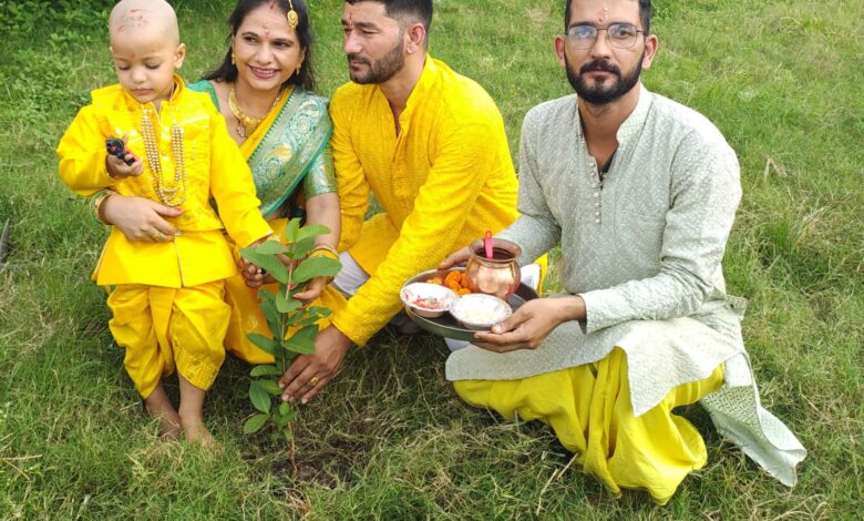 संस्कार और पर्यावरण का संगम-अद्विक के चूड़ाकर्म पर रोपा गया समलौण पौधा