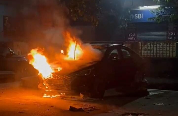 इधर आर्यनगर क्षेत्र में सड़क किनारे खड़ी कार में अचानक लगी आग, आसपास अफरा-तफरी का माहौल।