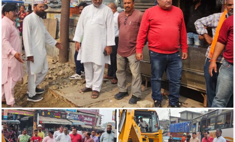 खटीमा, व्यापारियों द्वारा पिछले काफी समय से मेला घाट रोड पर बने फुटपाथ को हटाने की मांग की जा रही थी, आज नगर पालिका प्रशासन द्वारा मेला घाट रोड रेलवे पटरी से लेकर मुख्य चौराहे तक दोनों तरफ बने फुटपाथ हटाने की कार्रवाई शुरू की गई नगर पालिका अध्यक्ष रमेश चंद्र जोशी ने कहा कि मेला घाट रोड पर बढ़ते हुए अतिक्रमण को लेकर व्यापारियों द्वारा काफी समय से शिकायत की जा रही थी दोनों तरफ बने फुटपाथ पर कुछ लोग अपना सामान रखकर फुटपाथ पर अतिक्रमण कर कर बैठे थे जिससे एक तो फुटपाथ का सदुपयोग नहीं हो पा रहा था दूसरा फुटपाथ के आगे गाड़ी खड़ी करने एवं ठेले खड़े होने से आवागमन प्रभावित हो रहा था बरेली टनकपुर रेल मार्ग पर रेलों की संख्या बढ़ने से फाटक बंद होने के उपरांत रेलवे फाटक से मुख्य चौक तक जाम की समस्या उत्पन्न हो रही थी प्रतिदिन लगने वाले इस जाम से इस रोड से लोगों को एवं यात्रियों काफी दिक्कत हो रही थी साथ ही व्यापारियों को व्यापार करने में काफी परेशानियों का सामना करना पड़ रहा था व्यापारी काफी समय से प्रशासन से फुटपाथ हटाने की मांग कर रहे थे आज नगर पालिका प्रशासन द्वारा दोनों तरफ के फुटपाथ हटाकर आवागमन की समस्या का निराकरण करने की पहल की गई नगर पालिका अधिशासी अभियंता प्रियंका आर्य ने कहा कि किसी भी रोड पर किसी प्रकार का अतिक्रमा बर्दाश्त नहीं किया जाएगा बढ़ती जनसंख्या एवं बढ़ते ट्रैफिक को ध्यान में रखते हुए खटीमा की चारों रोड को अतिक्रमण मुक्त किया जाएगा, नगर पालिका अध्यक्ष रमेश चंद्र जोशी ने बताया कि व्यापारियों को किसी प्रकार की समस्या उत्पन्न ना हो ऐसा प्रयास करते हुए फुटपाथ हटाया जा रहा है साथ ही शहर में लगने वाले फल एवं ठेला व्यापारियों के लिए सरकार से वेंडर जोन के लिए भूमि आवंटित करने की मांग के लिए पत्राचार किया जा रहा है, नगर पालिका का प्रयास रहेगा कि व्यापारियों का व्यापार किस प्रकार से प्रभावित न हो इस अवसर पर भारतीय जनता पार्टी के पूर्व नगर मंडल महामंत्री मनोज वाधवा व्यापारी नेता दिनेश अग्रवाल व्यापारी सरदार अमरजीत सिंह हरीश भट्ट राहुल शर्मा रोहित छाबड़ा राहुल सक्सेना मनोज अग्रवाल सफाई नायक विजय कुमार, जगदीश गुप्ता अनिल प्रजापति सुमित भटनागर, बिट्टू रस्तोगी अमन मित्तल केशव अग्रवाल सिंटू गुंबर वनी अग्रवाल राहुल रोहेला संजय सोनकर रामजी डाबर विशाल अग्रवाल आदि उपस्थित थे।