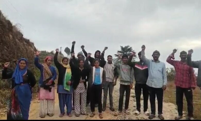 ग्रामीणों ने सड़क में डामरी करण की मांग को लेकर किया प्रदर्शन।