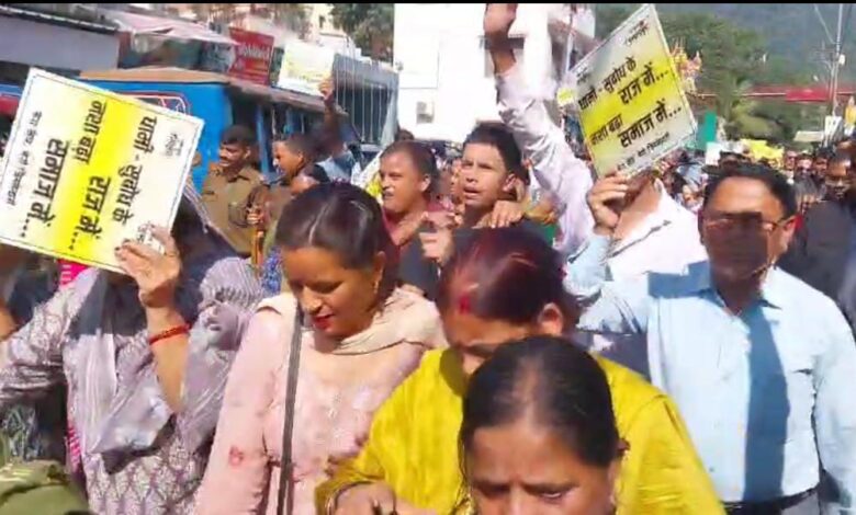 लेकिन वहीं दूसरी और तीर्थ नगरी ढालवाल अंतर्गत खारास्त्रोत मुनि की रेती में चल रहें शराब के ठेके के विरोध में आज नारेबाजी करते जन आक्रोश रैली निकाली गई है। जिसमें युवा,महिलाएं और वरिष्ठ नागरिक हाथों में स्लोगन तख्ती को लेकर खारा स्त्रोत से लेकर लेकर कैलाश गेट होते हुए सरकार के खिलाफ नारेबाजी करते हुए रामलीला मैदान पहूंचे।