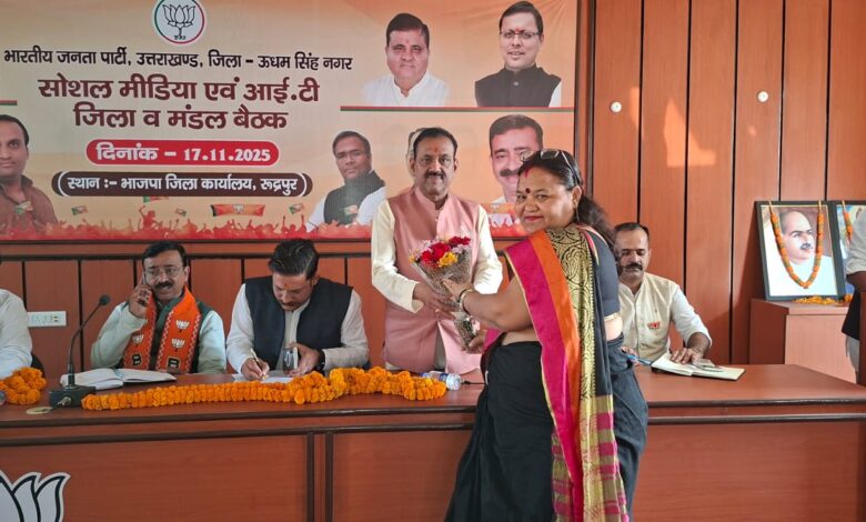 रूद्रपुर। भाजपा जिला कार्यालय में आयोजित संगठनात्मक बैठक में पार्टी के वरिष्ठ नेताओं ने आगामी मिशन 2027 को लेकर कार्यकर्ताओं के साथ रणनीति और प्रचार-प्रसार की दिशा पर विस्तृत मंथन किया। बैठक की अध्यक्षता जिला अध्यक्ष कमल जिंदल ने की, जबकि बैठक में प्रदेश सोशल मीडिया संयोजक हिमांशु संगतानी, प्रदेश आईटी संयोजक प्रवीण लेखबार, सोशल मीडिया संयोजक गंधार अग्रवाल सहित अन्य वक्ताओं ने अपने विचार व्यक्त करते हुए प्रचार अभियान में सोशल मीडिया की भूमिका पर चर्चा की।