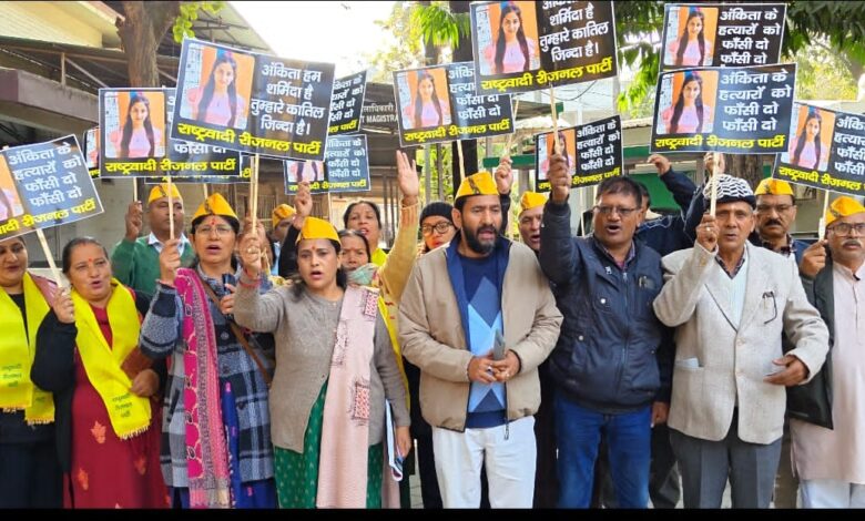 अंकिता भंडारी हत्याकांड: राष्ट्रवादी रीजनल पार्टी ने सीबीआई जांच की मांग को लेकर जिलाधिकारी कार्यालय पर प्रदर्शन