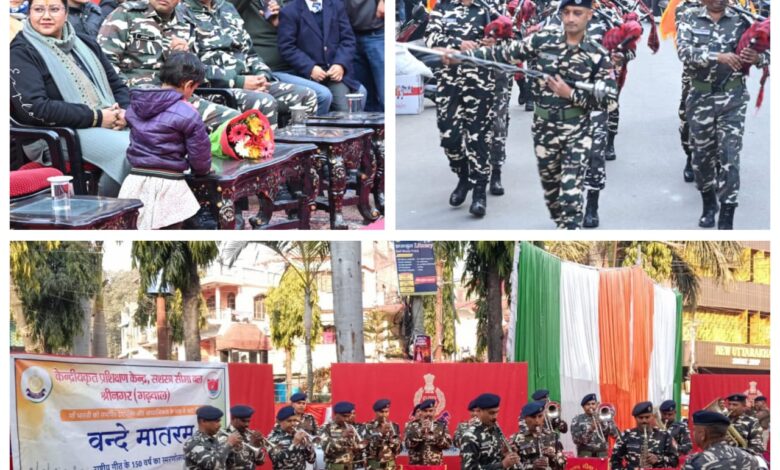 राष्ट्रगीत वंदे मातरम् के 150 गौरवशाली वर्ष-एसएसबी श्रीनगर द्वारा भव्य बैंड डिस्प्ले गोला मार्केट राष्ट्रभक्ति के रंग में रंगा