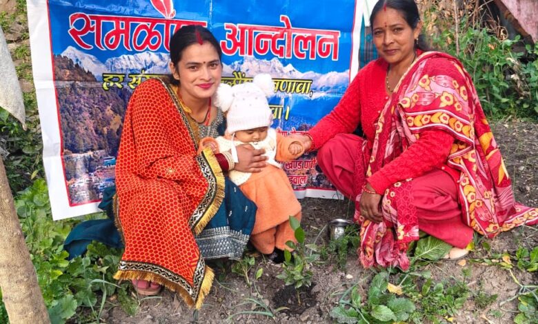 संस्कारों के साथ संवेदना का संकल्प-समलौण पौध रोपकर सैजी गांव में मनाया गया नन्हीं रिन्ताशी का प्रथम आगमन