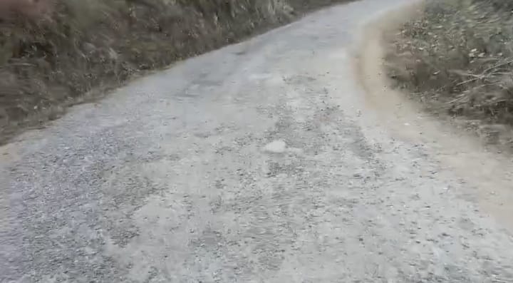 देलचौरी-कांडा-मंजीन मार्ग बना हादसों का न्योता-उखड़ा डामर,सड़क पर बिखरा कंक्रीट-लोक निर्माण विभाग की गुणवत्ता पर गंभीर सवाल