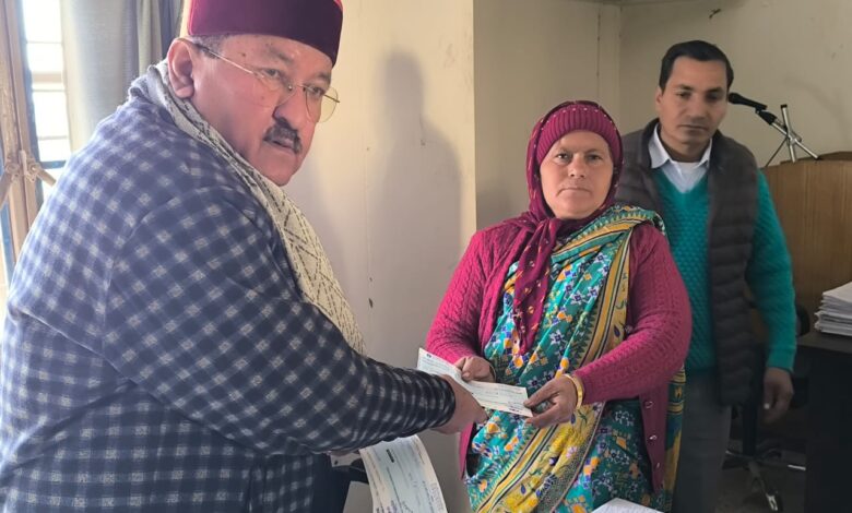 जखोली/श्रीनगर गढ़वाल। विकास खण्ड जखोली के तहसील सभागार में रुद्रप्रयाग विधायक भरत सिंह चौधरी ने गरीब एवं आर्थिक रूप से जरुरतमद व्यक्तियों को विवेकाधीन कोष के नौ लाख साठ हजार रुपए के आर्थिक सहायता के चेक वितरित किए हैं। इस अवसर पर उन्होंने सरकार की जनकल्याणकारी योजनाओं से लोगों को अवगत कराया है। शनिवार को विधायक भरत सिंह चौधरी ने तहसील जखोली के सभागार में गरीब और जरूरतमंद व्यक्तियों को विवेकाधीन कोष के आर्थिक सहायता के नौ लाख साठ हजार रुपए के चेक वितरित करते हुए कहा कि क्षेत्र के जो भी आर्थिक रूप से कमजोर या जरुरतमंद व्यक्ति हो,वे अपने आवेदन पत्र के साथ आधार कार्ड व सम्बंधित दस्तावेजों को उनके रुद्रप्रयाग स्थित कार्यालय में किसी भी समय जमा कर सकते हैं। उन्होंने कहा कि प्रदेश सरकार सभी को साथ लेकर चलने वाली है और भाजपा सबका साथ सबका विकास के सार्थक नारे को साकार रूप देने में लगी है। उन्होंने कहा कि प्रदेश के मुख्यमंत्री पुष्कर सिंह धामी लगातार जनहित के कार्यों में लगे हुए हैं। कहा कि पात्र लोगों को सरकार द्वारा प्रदत्त योजनाओं का लाभ उठाना चाहिए। इस अवसर पर भाजपा जखोली मण्डल अध्यक्ष मेहरवान सिंह रावत,एसडीएम जखोली भगत सिंह फोनिया,नायब तहसीलदार दूर्गा सिंह रावत,कानूनगो राजेन्द्र सिंह रावत,पूर्व प्रधान विजेन्द्र सिंह मेवाड़,भाजपा नेता संजयपाल नेगी,पूर्व प्रधान डॉ.संजय राणा,क्षेत्र पंचायत सदस्य भटवाड़ी सुरेश लाल सहित कई लाभार्थी ओर भाजपा कार्यकर्ता मौजूद थे।