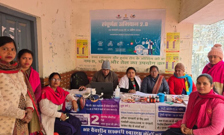 आकाशी विकास खंड सभागार में संपूर्णता अभियान 20 का भव्य शुभारंभगदरपुर । नीति आयोग भारत सरकार के द्वारा आकांक्षी विकासखंड कार्यक्रम के तहत संपूर्णता अभियान 20 का भव्य शुभारंभ विकासखंड सभागार गदरपुर में किया गया । कार्यक्रम का शुभारंभ प्रमुख क्षेत्र पंचायत ज्योति ग्रोवर,खंड विकास अधिकारी गदरपुर अतिया परवेज,जिला अर्थ एवं संख्याधिकारी/नोडल अधिकारी नफील जीमल द्वारा संयुक्त रूप से किया गया ।खंड विकास अधिकारी अतिया प्रवेज ने कार्यक्रम के विषय में विस्तार पूर्वक जानकारी देते हुए अवगत कराया कि संपूर्णता अभियान 20 ,दिनांक 28 जनवरी से 14 अप्रैल 2026 के मध्य क्रियान्वित किया जा रहा है,जिसमें स्वास्थ्य एवं पोषण (बाल विकास) से संबंधित चार मुख्य प्रदर्शन संकेतांकों, शिक्षा विभाग का एक संकेतांक व कृषि से संबंधित एक संकेतांक, जो पशुपालन विभाग से संबंधित है, के संतृप्तिकरण हेतु सभी मिलकर सम्यक प्रयास करेंगे व संपूर्णता को प्राप्त करेंगे ।कार्यक्रम के साथ ही राष्ट्रीय ग्रामीण आजीविका मिशन के तहत गठित स्वयं सहायता समूह की महिलाओं द्वारा उत्पादित तैयार सामग्री का प्रदर्शन व बिक्री आकांक्षा हाट के माध्यम से किया गया तथा स्वास्थ्य विभाग द्वारा जनमानस का स्वास्थ्य परीक्षण हाइपरटेंशन डायबिटीज की जांच इत्यादि की गई। विकास खंड की विभिन्न ग्राम पंचायतों में आम जनमानस व ग्राम स्तरीय कार्मिकों को भी विभिन्न संकेताकों के संतृप्तिकरण हेतु शपथ दिलाई गई व सभी को आपस में सामंजस्य बनाकर कार्य करने का आहवान किया गया । कार्यक्रम में स्वास्थ्य विभाग से आशा,एएनएम, बाल विकास विभाग से विभिन्न आंगनबाड़ी कार्यकतियों, फ्रंटलाइन वर्कर, बाल विकास परियोजना अधिकारी बीना भंडारी,वरिष्ठ पशु चिकित्साधिकारी डॉक्टर रवि शंकर झा, बी एम एम शेखावत शाह, सहायक विकास अधिकारी राजपाल सिंह चौहान, प्रधान सहायक आनंद सिंह बिष्ट, कनिष्ठ सहायक सुमित उपाध्याय, राधा रानी, निक्की ,अब्दुल रहमान,अब्दुल कादिर आदि उपस्थित रहे। अभियान की जानकारी पावर पॉइंट के माध्यम से सुश्री लता पांडे ने दी।कार्यक्रम का संचालन सहायक खंड विकास अधिकारी कुंदन सिंह बिष्ट एवं उप कार्यक्रम अधिकारी अमित कुमार मेहरा द्वारा संयुक्त रूप से किया गया।