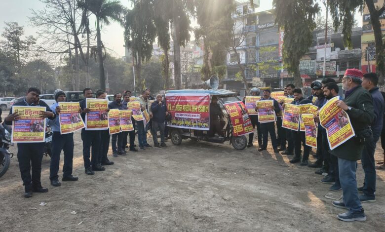 4 श्रम संहिताओं (लेबर कोड्स) के विरोध में 12 फरवरी की राष्ट्रीय आम हड़ताल को सफल बनाने को लेकर श्रमिक संयुक्त मोर्चा ने आज परशुराम चौक ट्रांजिट कैम्प से गांधी पार्क तक बाइक तक रैली निकाली।