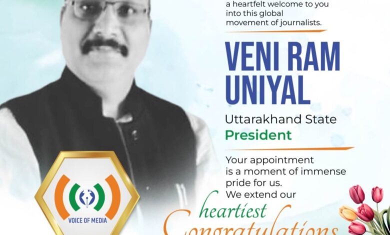 वॉइस ऑफ मीडिया के प्रदेश अध्यक्ष बने बेणीराम उनियाल