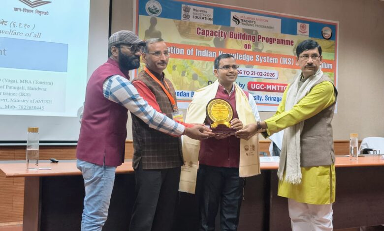 श्रीनगर गढ़वाल। भारतीय ज्ञान परम्परा को आधुनिक पाठ्यक्रमों के साथ समन्वित करने की दिशा में हेमवती नंदन बहुगुणा गढ़वाल विश्वविद्यालय के शैक्षणिक क्रियाकलाप केंद्र में आयोजित छह दिवसीय क्षमता निर्माण कार्यक्रम पाठ्यक्रम में भारतीय ज्ञान परम्परा का एकीकरण के दूसरे दिन विचार-मंथन का गंभीर और प्रेरक दौर देखने को मिला। एमएमटीटीसी के तत्वावधान में आयोजित इस कार्यक्रम में भारतीय ज्ञान प्रणाली (IKS) के दार्शनिक,शैक्षिक एवं व्यावहारिक आयामों पर विशेषज्ञों ने विस्तार से प्रकाश डाला। कार्यक्रम का मूल उद्देश्य अकादमिक पाठ्यक्रमों में भारतीय ज्ञान परम्परा के सिद्धांतों को समाविष्ट कर शिक्षण-अधिगम की प्रक्रिया को अधिक समग्र,जीवनोपयोगी और मूल्यपरक बनाना है। दूसरे दिन के सत्रों में यह स्पष्ट रूप से उभरकर सामने आया कि भारतीय शिक्षा दृष्टि केवल सूचना या कौशल प्रदान करने तक सीमित नहीं,बल्कि मनुष्य के बहुआयामी विकास की आधारशिला है। दो अलग-अलग सत्रों में पतंजलि विश्वविद्यालय के डॉ.प्रदीप कुमार साहू ने भारतीय दृष्टि और जीवन-दर्शन विषय पर अपने व्याख्यान में कहा कि भारतीय ज्ञान परम्परा का उद्देश्य मनुष्य के समग्र विकास का मार्ग प्रशस्त करना है। उन्होंने आधुनिकता के साथ भारतीय ज्ञान के संवर्द्धन की अवधारणा को स्पष्ट करते हुए कहा कि भारतीय परम्परा में ज्ञान का संबंध जीवन-प्रयोग से है,न कि केवल सैद्धांतिक बौद्धिकता से। डॉ.साहू ने पंचकोश सिद्धांत की व्याख्या मानव अस्तित्व की पांच परतों के रूप में करते हुए कहा कि शिक्षा का लक्ष्य इन सभी स्तरों-शारीरिक,प्राणिक,मानसिक,बौद्धिक और आध्यात्मिक का संतुलित विकास होना चाहिए। उन्होंने पर्यावरण संरक्षण,लोककल्याण और आध्यात्मिक उन्नयन को भारतीय दृष्टि के परस्पर जुड़े आयाम बताते हुए कहा कि यही समन्वय भारत की ज्ञान-परम्परा की विशिष्टता है। उन्होंने शिक्षण प्रक्रिया में पूर्वाग्रहों और सीमित दृष्टिकोणों को त्यागकर समावेशी,संवादात्मक और अनुभवपरक अधिगम को अपनाने की आवश्यकता पर बल दिया। समूह-गतिविधियों के माध्यम से प्रतिभागियों को भारतीय ज्ञान परम्परा के व्यावहारिक पक्षों से परिचित कराते हुए उन्होंने पाठ्यक्रम निर्माण में भारतीय दृष्टि आधारित नवाचार की जरूरत को रेखांकित किया। चरित्र-निर्माण और आत्मबोध का माध्यम है शिक्षा वहीं कुमाऊं विश्वविद्यालय के डॉ.प्रकाश चंद्र जोशी ने भारतीय ज्ञान प्रणाली की शिक्षण-पद्धति पर विशेष चर्चा करते हुए कहा कि भारतीय परम्परा में शिक्षण केवल सूचना-प्रदान की प्रक्रिया नहीं,बल्कि चरित्र-निर्माण,उन्होंने कहा कि भारतीय अध्यापन-पद्धति में शिक्षा की कला और तर्क का अभ्यास आधारभूत तत्व हैं,जो जी