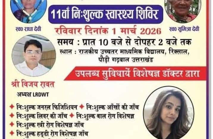 पौड़ी/श्रीनगर गढ़वाल। चौथान क्षेत्र के दूरस्थ ग्रामीण इलाकों में स्वास्थ्य सेवाओं को सुलभ बनाने के उद्देश्य से स्व.राधा देवी वेलफेयर ट्रस्ट द्वारा 1 मार्च 2026 (रविवार) को रिक्साल में 11 वें निःशुल्क स्वास्थ्य शिविर का आयोजन किया जा रहा है। यह शिविर स्व.सुमित्रा देवी (ग्राम-लिंगुंडिया) की पुण्य स्मृति में आयोजित किया जा रहा है। शिविर का आयोजन प्रातः 10 बजे से दोपहर 2 बजे तक राजकीय उच्चतर माध्यमिक विद्यालय रिक्साल पौड़ी गढ़वाल परिसर में किया जाएगा। आधुनिक जांच सुविधा और विशेषज्ञ चिकित्सक ट्रस्ट के अध्यक्ष विजय रावत ने जानकारी देते हुए बताया कि इस बार शिविर में आधुनिक जांच मशीनें विशेष रूप से लाई जा रही हैं,जिससे रोगों की त्वरित एवं सटीक जांच संभव होगी। दिल्ली से विशेषज्ञ डॉक्टरों की टीम भी शिविर में पहुंचेगी,जो मरीजों को परामर्श प्रदान करेगी। शिविर में निम्न सेवाएं पूर्णतः निःशुल्क उपलब्ध रहेंगी जैसे जनरल फिजिशियन द्वारा परामर्श आंखों की जांच,लिवर जांच,स्त्री रोग विशेषज्ञ द्वारा जांच,बाल रोग विशेषज्ञ परामर्श,हड्डी रोग विशेषज्ञ जांच,ब्लड शुगर जांच एवं फेफड़ों की जांच सभी टेस्ट आधुनिक मशीनों द्वारा आवश्यक दवाइयों का मुफ्त वितरण,विशेषज्ञ डॉक्टरों द्वारा सीधे परामर्श की सुविधा ग्रामीणों के लिए अत्यंत लाभकारी सिद्ध होगी,विशेषकर उन क्षेत्रों में जहां नियमित स्वास्थ्य सेवाएं सीमित हैं। चौथान क्षेत्र में आयोजित 11 वां स्वास्थ्य शिविर है। इससे पूर्व बूंगीधार,जगतपुरी और उफरैंखाल में भी सफलतापूर्वक शिविर लगाए जा चुके हैं,जिनसे बड़ी संख्या में ग्रामीण लाभान्वित हुए। पर्वतीय क्षेत्रों में समय पर जांच और उपचार के अभाव में सामान्य बीमारियां भी गंभीर रूप ले लेती हैं। ऐसे में यह शिविर न केवल उपचार बल्कि जागरूकता का भी माध्यम बनेगा। ट्रस्ट की महिला प्रकोष्ठ अध्यक्ष प्रिया सहित समस्त कार्यकर्ताओं द्वारा आयोजन को सफल बनाने की तैयारियां अंतिम चरण में हैं। ग्रामीणों से अपील ट्रस्ट की ओर से क्षेत्रवासियों से आग्रह किया गया है कि वे अधिक से अधिक संख्या में पहुंचकर इस निशुल्क स्वास्थ्य शिविर का लाभ उठाएं। विशेष रूप से बुजुर्ग,महिलाएं और बच्चे इस अवसर को न चूकें। रिक्साल में आयोजित होने जा रहा यह स्वास्थ्य शिविर चौथान क्षेत्र के लिए एक जनसेवा महाअभियान है जहां सेवा,संवेदना और समर्पण का अद्भुत संगम देखने को मिलेगा।