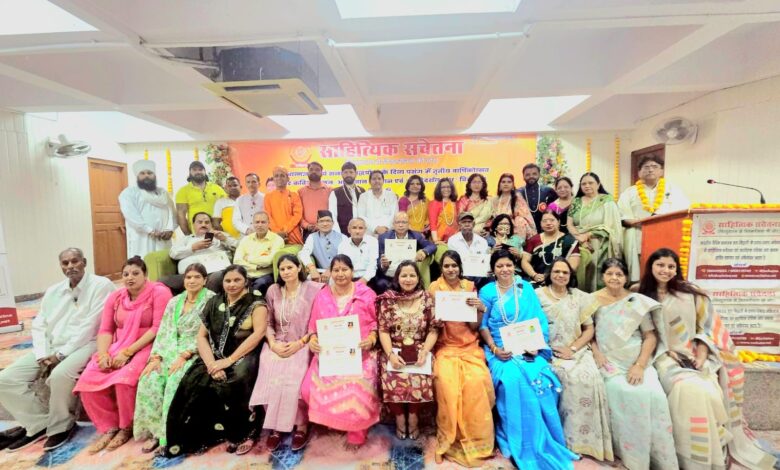 गुरुग्राम की पावन भूमि पर रविवार, 15 मार्च 2026 को साहित्यिक सचेतना एवं स्वास्तिक मासिक पत्रिका के तत्वावधान में “सचेतना तृतीय वार्षिकोत्सव- सनातन साहित्य सम्मान एवं समागम” का भव्य आयोजन यादव कल्याण परिषद, श्रीकृष्ण मंदिर परिसर, सेक्टर-10A में सम्पन्न हुआ। इस गरिमामयी आयोजन में देश के विभिन्न राज्यों से आए साहित्यकारों, कवियों, चिंतकों, सामाजिक कार्यकर्ताओं तथा सनातन संस्कृति के प्रति समर्पित नागरिकों सहित लगभग 250 से अधिक लोगों ने सहभागिता की, जिसमें सभी को टीका, स्वास्तिकचिन्ह वाला कलावा, मोरपँख वाला बैज आदि से स्वागत गया।