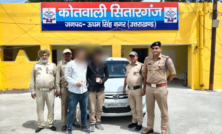 ड्रग्स मुक्त उत्तराखण्ड अभियान के तहत कोतवाली सितारगंज पुलिस ने एक बार फिर नशे के खिलाफ जोरदार कार्रवाई करते हुए सिडकुल क्षेत्र के एमबीआर बॉर्डर सर्विस रोड तिराहे से कार सवार दो तस्करों को धर दबोचा। वरिष्ठ पुलिस अधीक्षक के सख्त निर्देशों के अनुपालन में 18 अप्रैल 2026 को उपनिरीक्षक जगत सिंह शाही के नेतृत्व में चलाए गए चेकिंग अभियान के दौरान पुलिस टीम ने संदिग्ध कार यूके 06 एसी 1937 को रोककर तलाशी ली, जिसमें सवार दिव्येश कुमार (35 वर्ष) निवासी ज्योलीकोट, थाना तल्लीताल, जनपद नैनीताल और शैलेन्द्र बिष्ट (33 वर्ष) निवासी बागनाथ कॉलोनी, थाना मुखानी, नैनीताल को गिरफ्तार किया गया। तलाशी में दिव्येश के कब्जे से 6.72 ग्राम तथा शैलेन्द्र के पास से 6.19 ग्राम अवैध स्मैक (हेरोइन) बरामद हुई, जिसकी कुल मात्रा 12.91 ग्राम पाई गई। पुलिस ने तत्काल कार्रवाई करते हुए दोनों आरोपियों के खिलाफ कोतवाली सितारगंज में एफआईआर संख्या 184/2026 धारा 8/21/60 एनडीपीएस एक्ट के तहत मुकदमा दर्ज कर लिया है और उनके आपराधिक इतिहास की गहन जांच शुरू कर दी गई है। इस पूरी कार्रवाई में उपनिरीक्षक सुरेंद्र सिंह दानू, हेड कांस्टेबल राजेंद्र सिंह, कांस्टेबल विनोद जोशी व अर्जुन नगन्याल की महत्वपूर्ण भूमिका रही। पुलिस अधिकारियों का कहना है कि क्षेत्र में नशे के अवैध कारोबार पर पूरी तरह अंकुश लगाने के लिए लगातार अभियान चलाया जा रहा है और किसी भी सूरत में नशा तस्करों को बख्शा नहीं जाएगा।