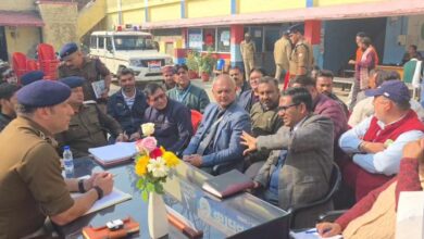 पुलिस लाइन सभागार में आयोजित हुई मासिक अपराध गोष्ठी _वरिष्ठ पुलिस अधीक्षक देवेंद्र पींचा ने शुक्रवार को पुलिस कार्यालय अल्मोड़ा सभागार में मासिक अपराध गोष्ठी के तहत अपराधों की कार्रवाई की समीक्षा की। एसएसपी ने बीते माह के अपराधों की समीक्षा करते हुए लंबित विवेचनाओं, मुकदमों, शिकायतों, वारंट, नोटिस आदि का समय पर निस्तारण करने और वांछित अभियुक्तों की शीघ्र गिरफ्तारी करने के निर्देश दिए। साथ ही जनपद में संदिग्धों की तलाश करने के लिए सघन चेकिंग व वेरिफिकेशन ड्राइव चलाने व आपराधिक तथा संदिग्ध गतिविधियां मिलने पर कड़ी वैधानिक कार्रवाई करने के लिए निर्देशित किया गया। और कहा कि नशे के खिलाफ हमारा अभियान लगातार जारी है।