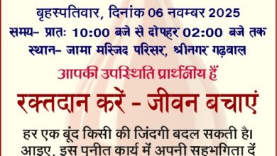 श्रीनगर गढ़वाल। मानवता और सामाजिक एकता का संदेश देने वाला एक ऐतिहासिक आयोजन 6 नवम्बर 2025 बृहस्पतिवार को श्रीनगर गढ़वाल…